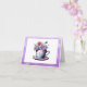 Thank you cards. Vintage antique teacup full of purple, pink and blue flowers. AI art generative content.