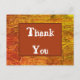 Say "thank you" with an inexpensive postcard featuring beautiful autumn colors of orange, yellow, and brown. The background displays thin horizontal lines in fall colors that resemble straw or dried grass. A large rectangle in the center in rusty orange provides the solid background for "Thank You" which can easily be customized if you desire.