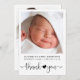 A cute baby girl or baby boy thank you birth announcement. The front features your newborn's photo, name, arrival date and birth stats, and "thank you" written in a stylish script with a heart joining the two words. On the reverse side add an additional photo, personalize a thank you message and add parent and sibling names under a coordinating cute arrow with a heart.