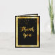 A chic black background color and a faux gold frame. With a golden confetti rain. On front a hand lettered style script and the text: Thank You! and a floral faux gold decor.