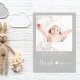 A simple and sweet gender neutral thank you birth announcement with modern pastel yellow typography against a soft grey background. The front features your newborn's photo, full name, arrival date and birth stats, and "thank you" written in a trendy pastel yellow script with a heart joining the two words. On the reverse side of the card you can add an additional photo, a thank you message, and parent and sibling names under a coordinating cute pastel yellow arrow with a heart in the middle.