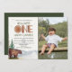 Cute and unique watercolor woodland, bear - one happy camper- custom photo 1st birthday thank you card. Customizable!