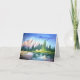 This painting shows a rugged pink mountain, a green forest, a river valley, and a blue sky. It is based on an original acrylic painting on canvas by Artcor7Cards artist. In the front, the card has this image and the expression: “Thank you.” Inside, there are also small versions of the image and the expression: “Thank you!”