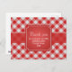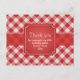 These "Thank You" postcards are perfect for any event. They are suitable for all occasions including your birthday party, anniversary events, showers and more. It is a seamless, red and white gingham checks pattern in the background. The front has the text, "Thank you", and your message, printed on a red, ticket-shaped plaque. Change the text to match your event. The back, left is blank for your hand-written message.