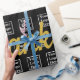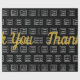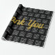 Large display text reads 'Thank You' in faux gold script. (If desired, you can edit the text to show a custom message.) Replace the display logo file with your company's logo. Your logo will appear in a pattern on black wrapping paper.