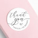 Thank You Script Heart Baked Goods Business Classic Round Sticker. Customise your product and name to make the perfect label for your small business needs.