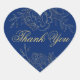 Thank You Script Royal Blue Gold Outline Flowers Heart Sticker