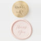 Before the wax hardens, gently and evenly press the wax seal stamp into the melted wax, ensuring it's centered.