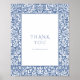 Express your gratitude with this elegant Victorian-inspired wedding thank you sign. Framed with intricate blue and white floral patterns reminiscent of classic William Morris designs, this sign serves as a beautiful addition to your wedding decor. The text, "Thank You - For celebrating with us," adds a heartfelt touch to any reception or entryway table, making guests feel appreciated for their presence on your special day. Perfect for vintage, traditional, or garden-themed weddings, this sign combines timeless style with a meaningful message.