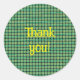 Thank you, is written in yellow letters on a green and yellow blend weave pattern, and is printed on custom stickers. It's easy to customize the text on the template form. Thank you for shopping at CherylsArt on Zazzle.