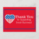 Patriotic message to customers and community for supporting your local / small businesses. Both lines of text can be customized. Postcard features patriotic heart graphic on red background with thin blue border frame.
