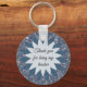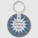 This teacher appreciation keychain features multiple tones of blue. The blue background is mosaic tiles which provide a base for the two-tone flower in the center. The pale blue inner flower provides a light background to allow your message of appreciation to stand out. Customize all text if desired.