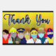 Say thank you to all essential workers during the Covid pandemic with this appreciation sign.. Cartoon drawing I did of a health care professional, fireman, policeman, pizza delivery boy, grocery delivery girl, nurse and mailman.