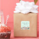 Beautiful favor, envelope sticker, with a tropical beach theme for your destination, island wedding. Turquoise background with seashells, starfish, pearl, sand and colorful gems.