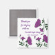 Are you looking for a unique way to welcome your guests and set your vacation rental apart from your competition? This square magnet features bright purple flowers that wind and curve their way along the refrigerator magnet. The bright purple of the flowers is complimented by the dark green leaves and stems. "Thank you for staying with us" along with your house name and contact information can easily be customized to suit your needs.