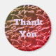 Say thank you with this elegant bright pink round magnet. This inexpensive appreciation magnet features vivid colors in a crinkled metallic or folded foil abstract pattern. Quickly and easily customize the words "thank you" which appear in the center of this magnet.