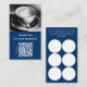 Show appreciation and build customer loyalty with this elegant café thank you card, featuring space for six round rubber stamps. Includes a QR code for menu access and a modern blue-and-white design. Perfect for coffee shops and small cafés looking to reward repeat customers.