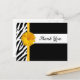 A fashionable black and white zebra print thank you postcard with a cute girly yellow daisy flower and the words "Thank You" written across a chic and stylish white stripe.
