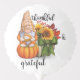 Celebrate this Thanksgiving with the cute Thanksgiving Gnome having a slice of pumpkin pie, lettered thankful & grateful design.