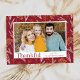 Elegant Thanksgiving photo card featuring your favorite family photo framed in white with a background of orange, white, and burgundy fall foliage. "Thankful" is featured in a trendy modern burgundy font style. Personalize the front of the card by adding your names, the year, or other text. The modern Thanksgiving card reverses to feature your personal message (optional) in white text with a burgundy background.