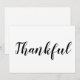 Thankful black and white script calligraphy cute thanksgiving greeting card.