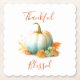 "Add a festive touch to your Thanksgiving table with our charming "Thankful & Blessed" paper coasters. Featuring a warm autumn-inspired design with a rustic pumpkin centerpiece surrounded by colorful fall leaves, these coasters bring seasonal charm and heartfelt sentiment to every gathering. Crafted from durable, absorbent paper, they help protect your surfaces from spills while enhancing your holiday decor. Perfect for Thanksgiving dinners, Friendsgiving celebrations, or cozy fall get-togethers."