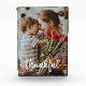 This Photo Block features your favorite photo with the word 'thankful' in an elegant brush script.