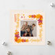 Holiday greeting card featuring a festive phrase "Happy Thanksgiving" "Thankful and Grateful" with colorful autumn leaves and one photo of your choice. Personalized this greeting card with your message, name and year.
