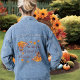 Get ready to cozy up in style this fall with our denim jacket featuring a stunning autumn-inspired design. Embrace the season's vibes with warm fall leaves and the words "thankful, grateful, blessed" on the back. Make a statement and stay comfy in this must-have jacket for the upcoming season. 🍂🧥