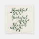 Thankful, Grateful, Blessed modern script typography surrounded by foliage, fall leaves graphics, custom text, name cute elegant Thanksgiving Party paper napkins.