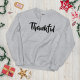It's that time of the year when we travel far and wide to gather with family over dinner table to feast on some turkey and drink some wine. Wear the spirit of the holiday with this simple sweatshirt. Featuring "thankful" in a simple calligraphy script font.