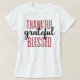 Embrace the spirit of gratitude with our "Thankful Grateful Blessed" white t-shirt. This elegant design features the words "Thankful," "Grateful," and "Blessed" in bold and cursive fonts, creating a striking and meaningful statement. Perfect for Thanksgiving gatherings, family dinners, or just a reminder to cherish the good things in life, this shirt is a beautiful expression of appreciation and positivity. Wear it with pride and spread the message of gratitude wherever you go.