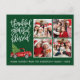 Modern Calligraphy Script Thankful Grateful Blessed 4 Photo Collage Holiday Postcard includes a Watercolor Vintage Red Truck with Christmas Tree. Forest Green Background.