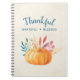 A spiral notebook with typography text which says: Thankful grateful blessed. perfect for the thanksgiving season. An image of an orange watercolor pumpkin with autumn leaves and sprigs.