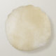 A round pillow with typography text which says: Thankful grateful blessed. perfect for the thanksgiving season. An image of an orange watercolor pumpkin with autumn leaves and sprigs. Background is a light brown watercolor image.