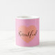 A clean and meaningful mug featuring a double heart design with the word “Thankful”.
