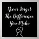 "Never Forget the Difference You Make" is more than just a motivational phrase; it's a powerful reminder of the positive impact we each have on the world around us. Whether it's a kind word, a helping hand, or a simple act of generosity, your actions create ripples that extend far beyond your immediate surroundings. This message serves as an uplifting reminder to embrace your unique strengths and use them to make a difference, no matter how small it may seem. Carry this message with you as a source of inspiration and encouragement, knowing that you have the power to make a positive impact on the lives of others and contribute to a better world....