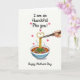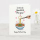 This greeting card features a bright white background with a steaming bowl of reddish-orange broth at the center, filled with tender slices of meat and fresh green herbs that suggest a comforting meal shared with care ❤️. Above the bowl, a simple illustrated hand holds dark, slender chopsticks, lifting golden noodles that curl into a heart shape like a sweet, affectionate gesture between loved ones. Soft white steam drifts upward in thin wisps, adding warmth to the scene without crowding the open space. Near the top, a friendly line of dark text reads, “I am so thankful Pho you!”, with the pun tying the food theme to a caring message. Small pink hearts float around the noodles and near the words, like little notes of affection in the air 🌼. Along the bottom edge, “Happy Mother’s Day.” appears in neat, dark lettering centered under the bowl. The composition keeps the focus on the heart-shaped noodles and the rising steam, with the pink hearts sprinkled lightly across the upper area. The bowl is shown from a slightly angled view, with the chopsticks coming in from above and the noodle heart hovering over the center of the soup.