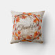Use this accent pillow all through fall into Thanksgiving holiday it is shown with a lovely rustic look fall autumn leaves wreath with Thankful in text.