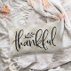 Add a festive touch to your Thanksgiving decor with this rustic autumn throw pillow. Design features "thankful" in black handwritten script, overlaid on a hand drawn buffalo plaid background in cream and white.