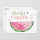 Thank your guests for celebrating! This fun watermelon themed thank you postcard features a watercolor watermelon and fun script saying "thanks a melon" Personalize with your information or click "Click to customize further" to edit font styles, size and colors.
