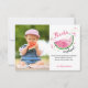 This sweet watermelon 1st birthday thank you card is perfect for your little girl's one in a melon first birthday party. The design features watercolor watermelons with hearts and swirls. Add your own photo. The watermelon theme is perfect for a summer birthday.