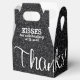 A fabulous party favor box covered with faux black glitter, the word THANKS wraps around the front to the side. We've added text "KISSES for celebrating with me!" on the top -- it can be removed or changed -- and a perfect treat to fill the box -- some chocolate KISSES! LOTS OF GLITTER COLORS AVAILABLE! (1) Text, fonts, colors, sizes can be modified, just click PERSONALIZE link or CUSTOMIZE button. (2) MATCHING Surprise Party Invitations and more in our store ---> http://bit.ly/2Hq3AT6 <--- or on the link below.