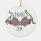 A purple and key lime green bra, with the text saying, "Thanks Bra."