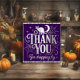 A shiny silver cat sits atop this Thank You for Dropping By glam Halloween purple and silver glitter poster
