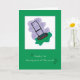 A fun illustration of a lawn mower driving through grass, set on a green background. Perfect card to say thanks to the people who take care of your yard, whether just your grass cutting, or trimming or lawn maintenance.