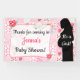 Personalize this pink baby girl baby shower banner by adding the "mom to be's" name in the customize area. Pink and sage green, flowers and polka dots quilted background with pregnant silhouette.