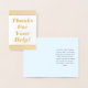 This eye-catching, attention-grabbing gold foil thank-you greeting card design features the message "Thanks For Your Help!" on the front, along with a customizable message on the inside. It could be used to offer thanks to somebody who has done a special deed.