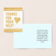 This eyecatching and attention-grabbing gold foil thank-you greeting card design features the message "THANKS FOR YOUR HELP!" on the front, along with a customized message on the inside. It could be used to show appreciation to somebody who has done something nice.