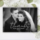 Thanks Hand Lettered Script Wedding Thank You Card. Personalize these elegant photo wedding thank you cards with your custom photos and text. You can edit the design further with the Edit Design button.